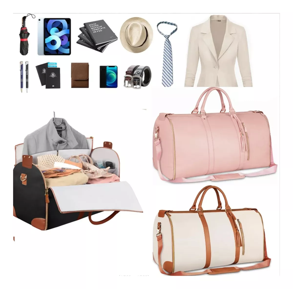 Modelo: bolsa de equipaje multifuncional para ropa, bolsa de viaje convertible de piel 2 en 1 para colgar maletas para mujer, bolsa de transporte de ropa para viajar